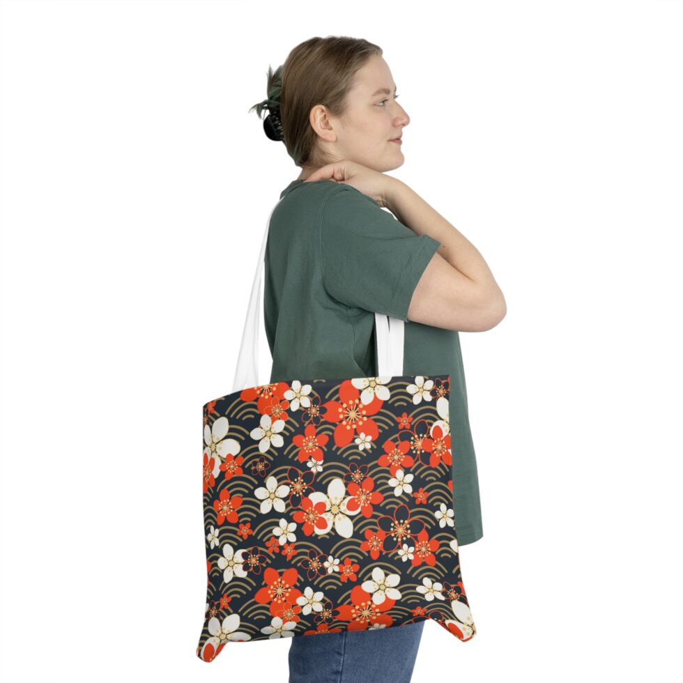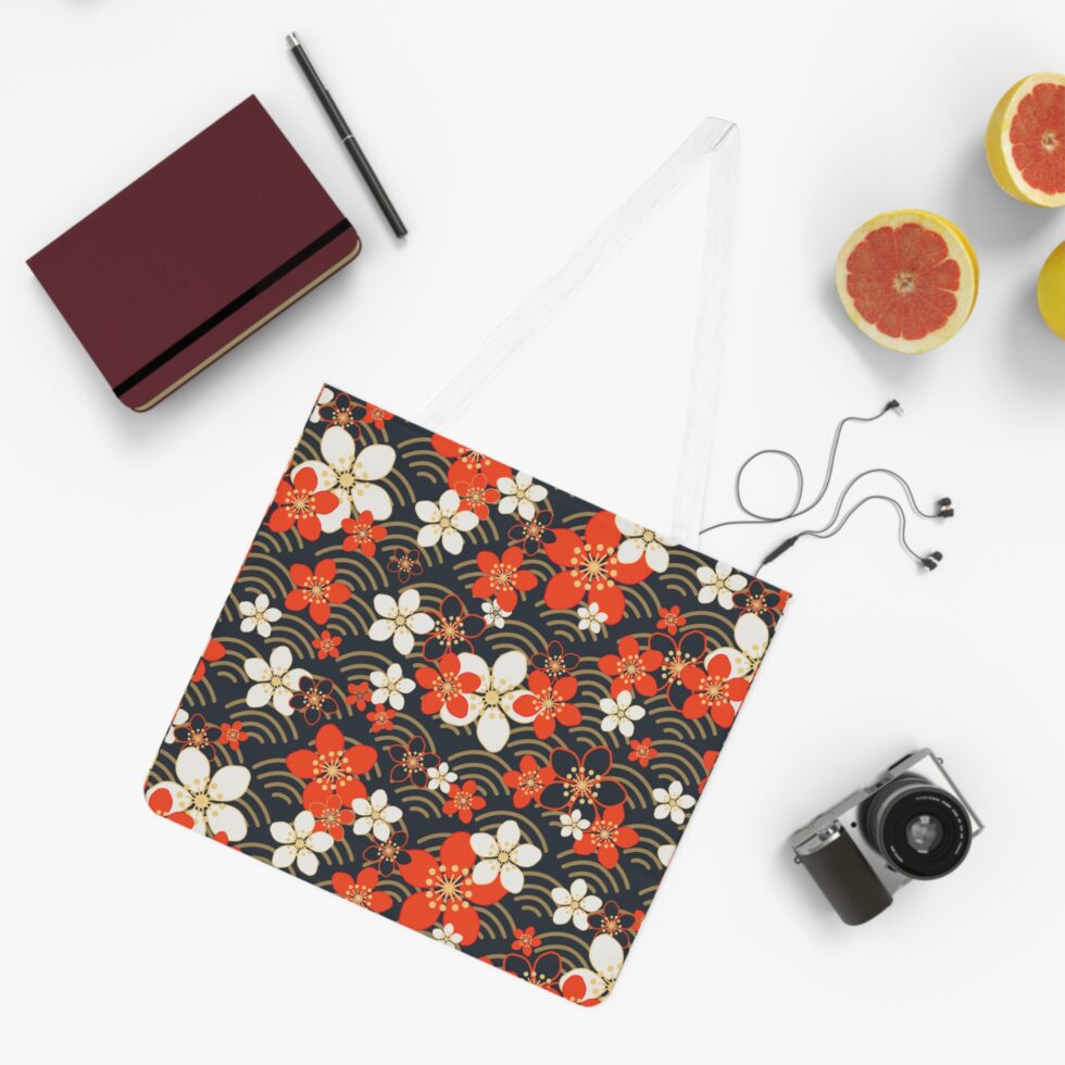 Carry a little calm and color with this cotton tote that wears its pattern like a quiet conversation. Soft, lightweight fabric keeps the bag easy to sling over your shoulder, while the long white handles and reinforced stitching mean it moves through daily life without fuss. The all-over floral print — warm reds and creams layered over a deep, wave-like background — feels both vintage and modern, slipping easily into city routines, market mornings, or a relaxed weekend by the park. Use it for books, market finds, or as an everyday carry that quietly elevates whatever you bring along.