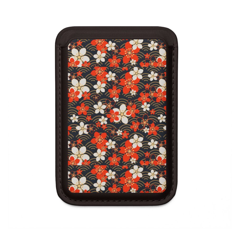 Floral Wave MagSafe Vegan Wallet — Red & White Japanese Blossom Card Pocket